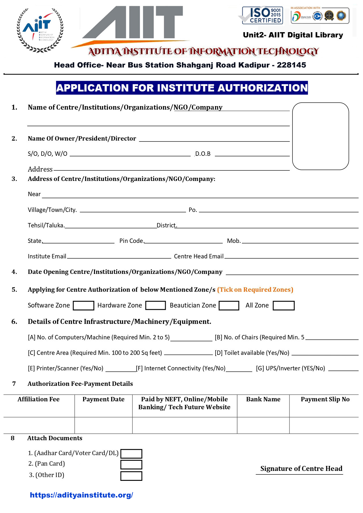 AIIT Affiliation Form
